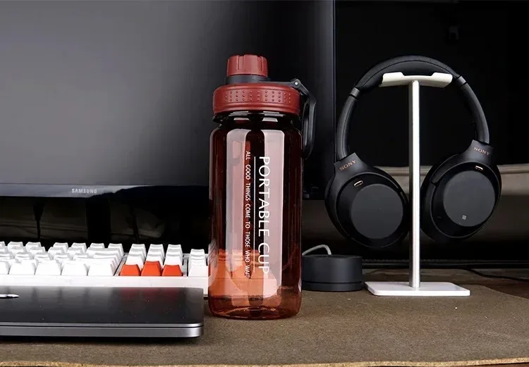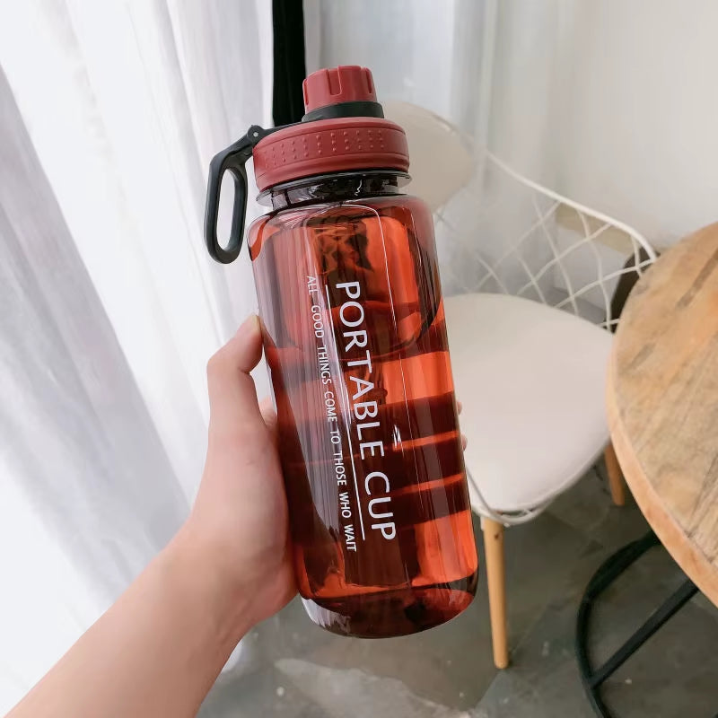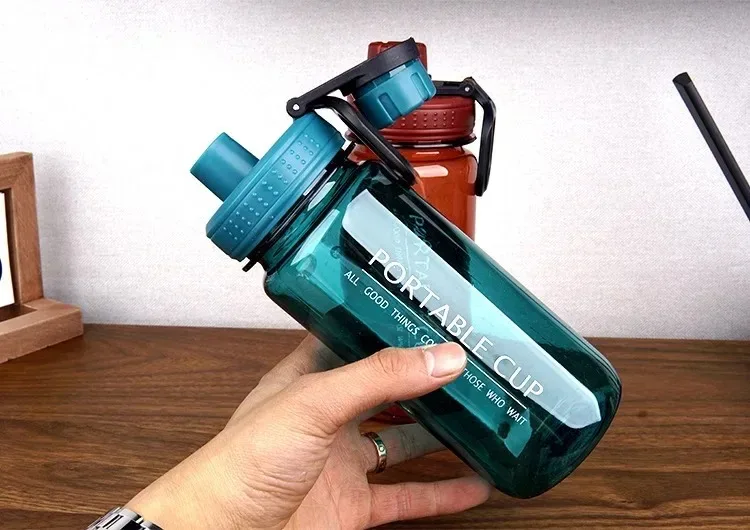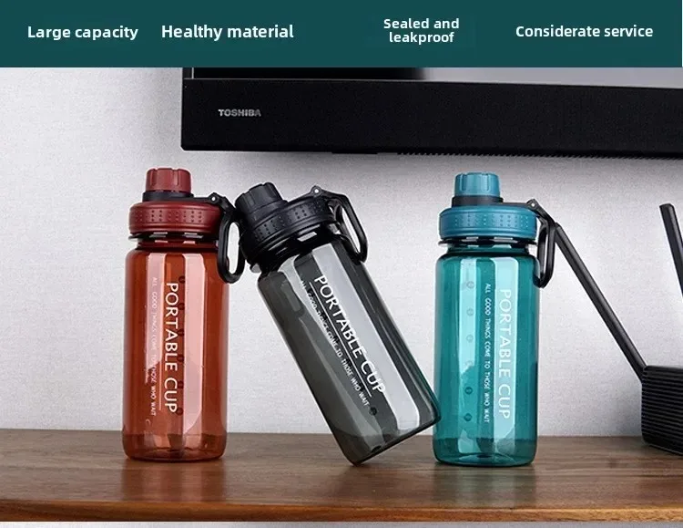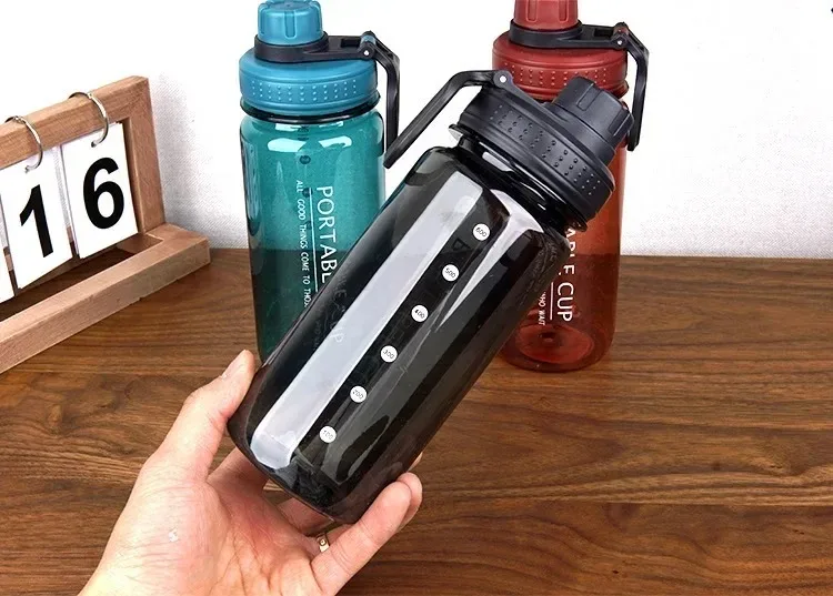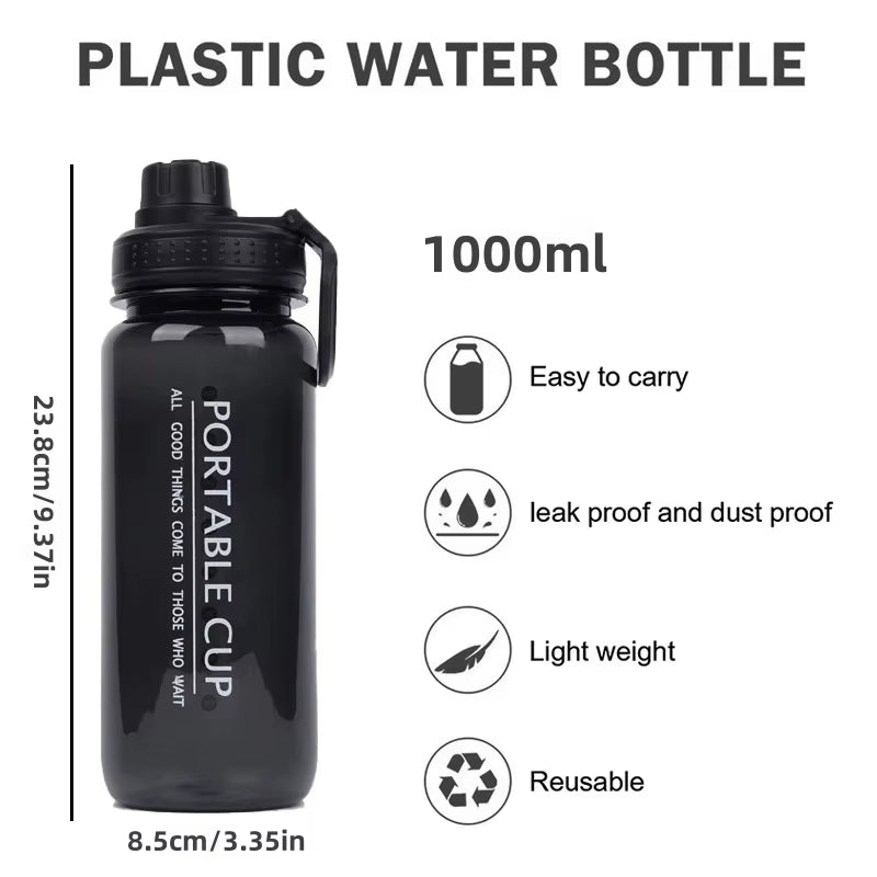 1000Ml Large Capacity Sports Water Bottle Leakproof Plastic Water Jugs with Handheld Ring Outdoor Cyclinghiking Beach Gym Kettle