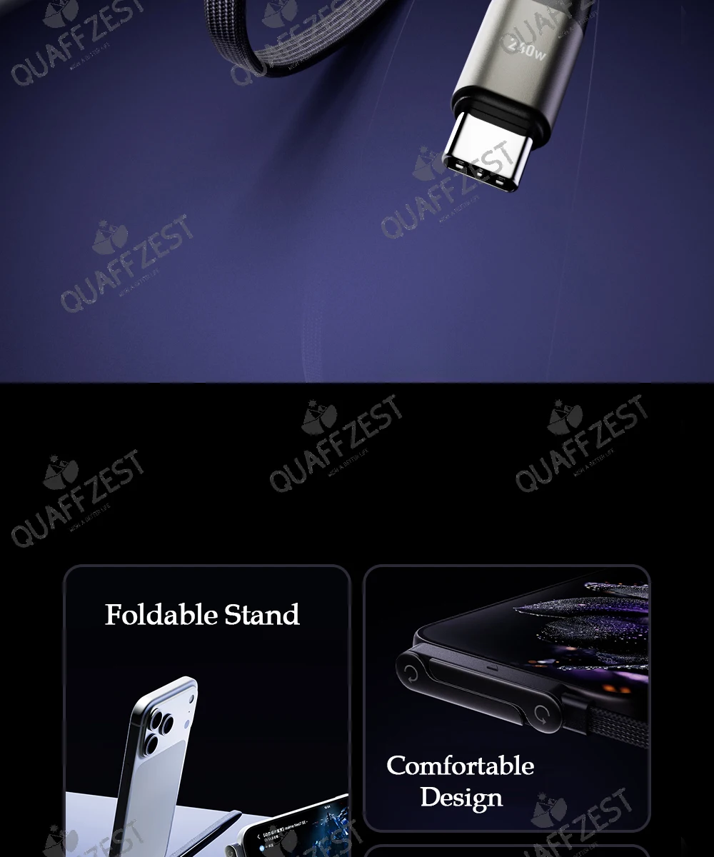 240W Fast Charging Cable with Built-in Holder