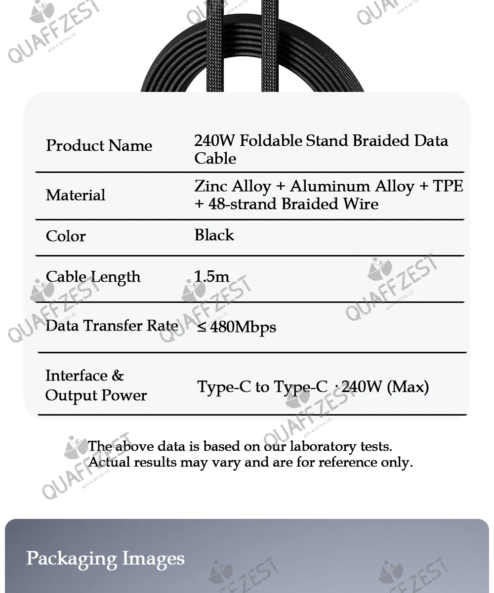 Interface & Output Power: Type-C to Type-C, 240W Max