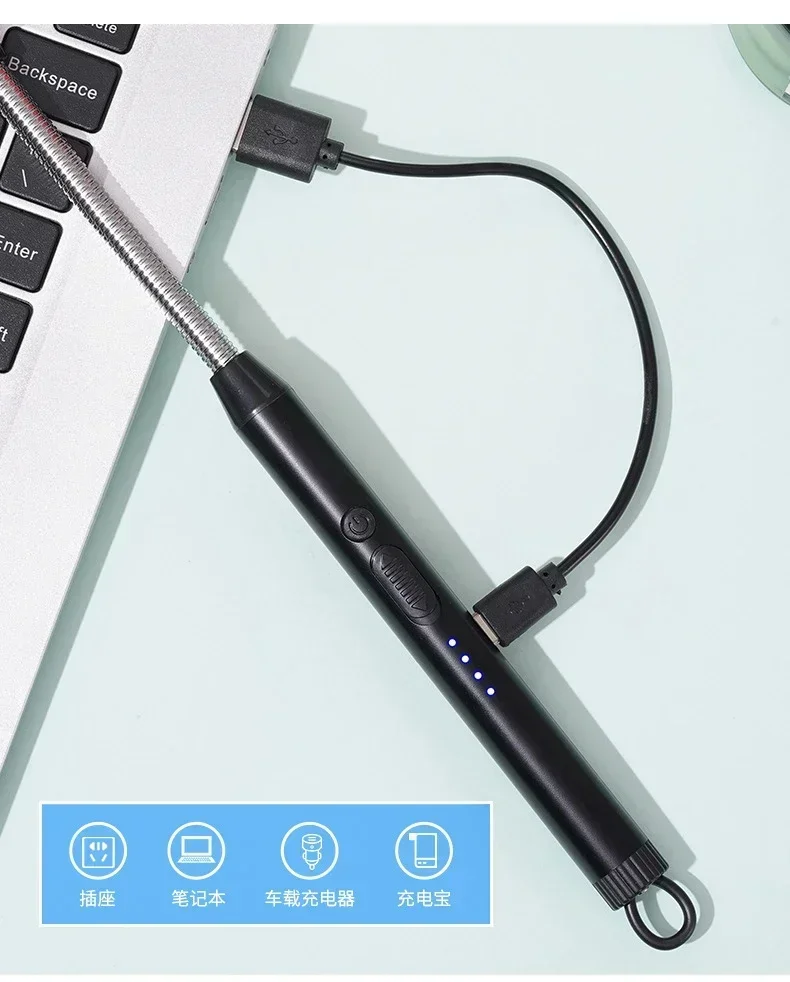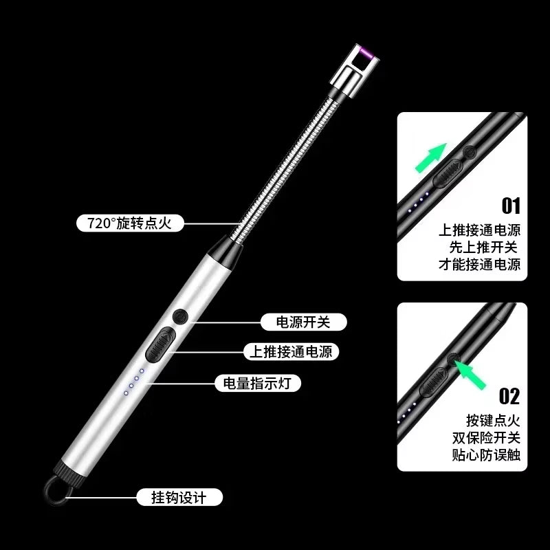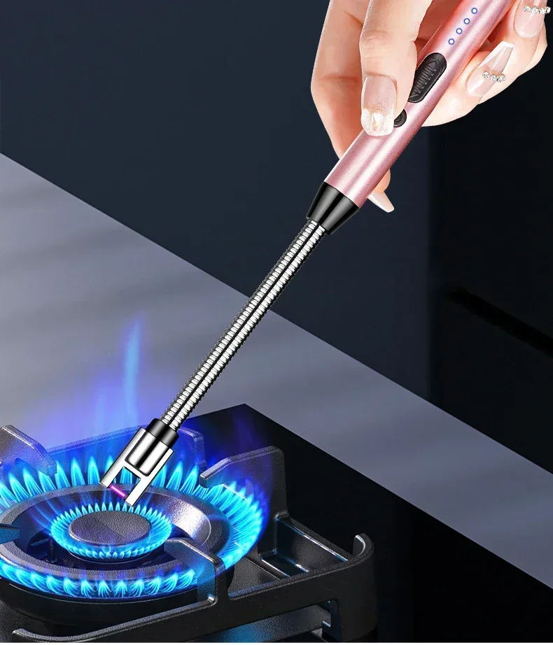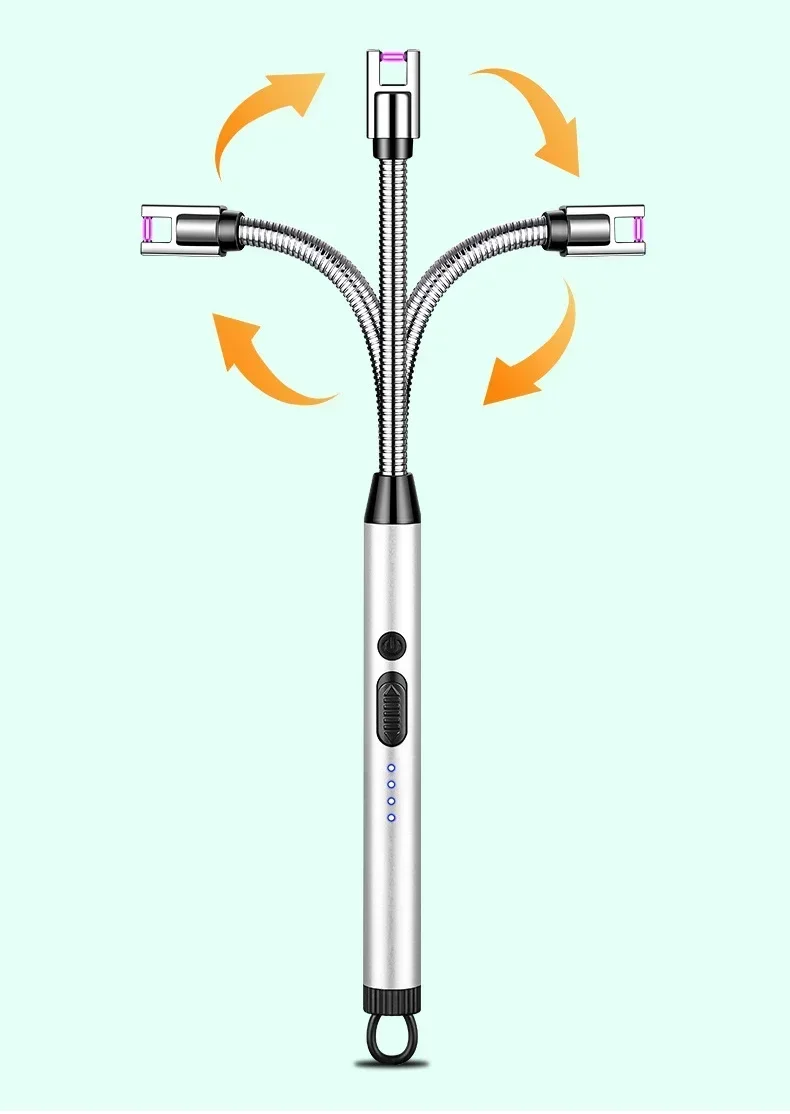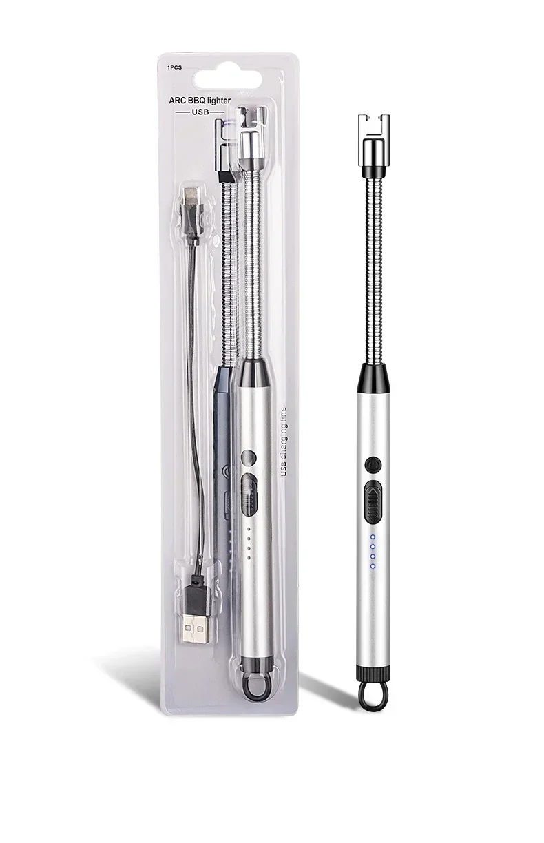 360° Electric Arc BBQ Lighter USB Windproof Flameless Plasma Ignition Long Kitchen Lighters Gas Lighter for Candle Gas Stove
