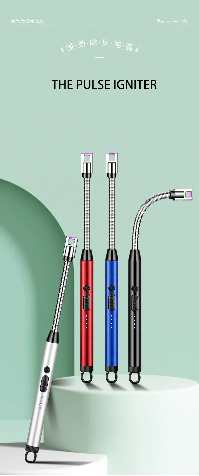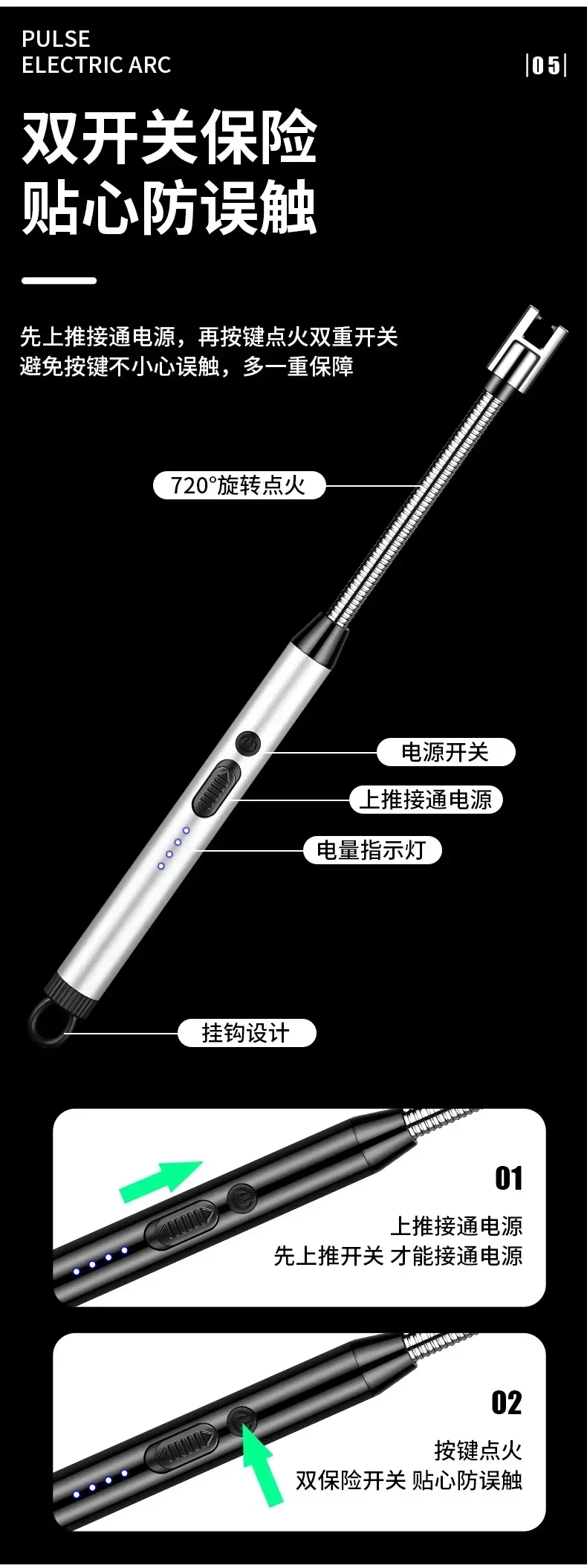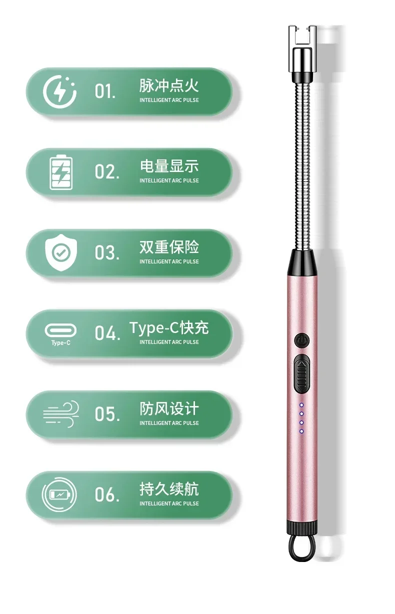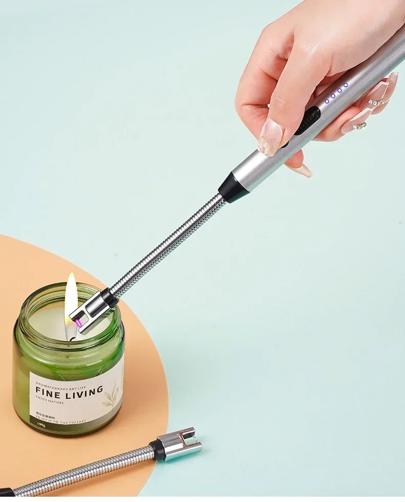 360° Electric Arc BBQ Lighter USB Windproof Flameless Plasma Ignition Long Kitchen Lighters Gas Lighter for Candle Gas Stove