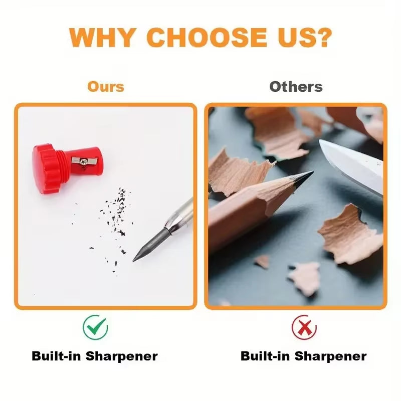 2. 【Sharpener for precise marking】: The sharpener is screwed into the top of the mechanical drawing pencil, and it will not be lost, and your mechanical pencil will always be sharpened for good accuracy