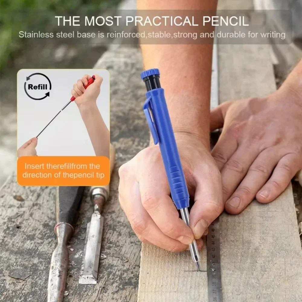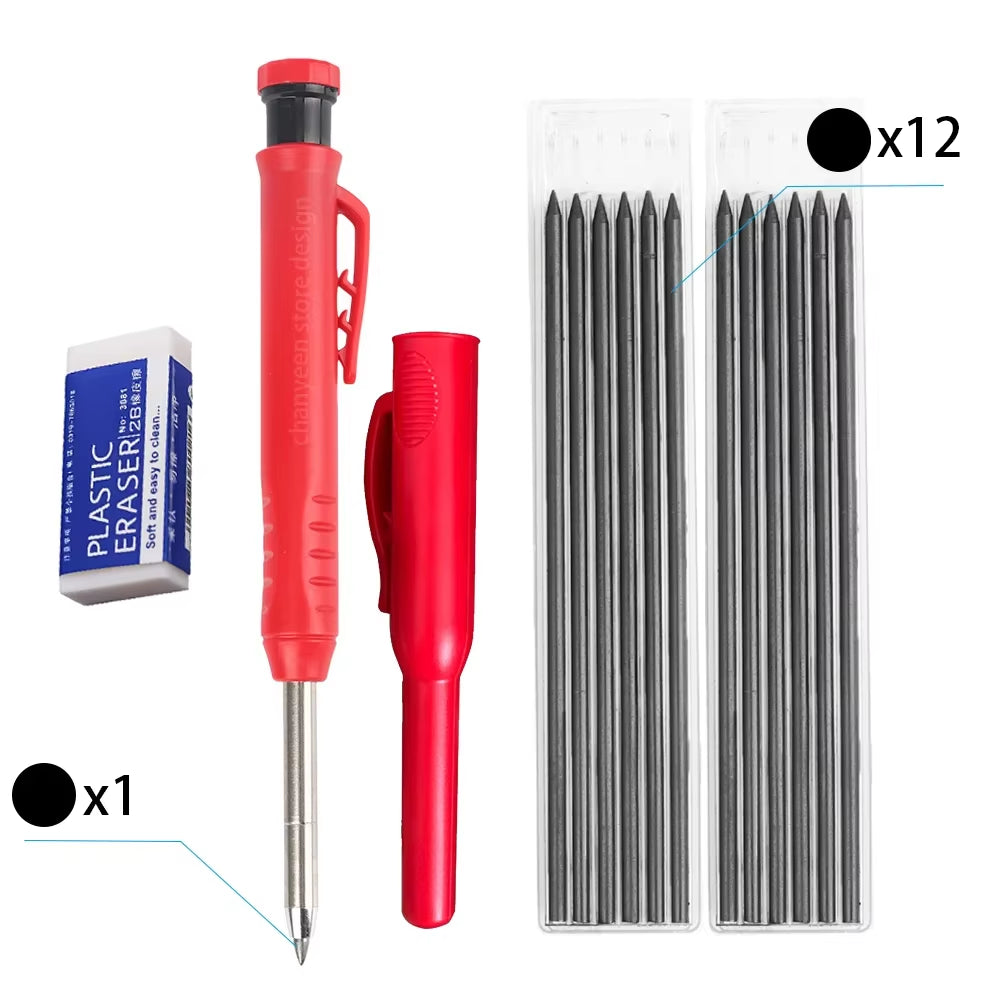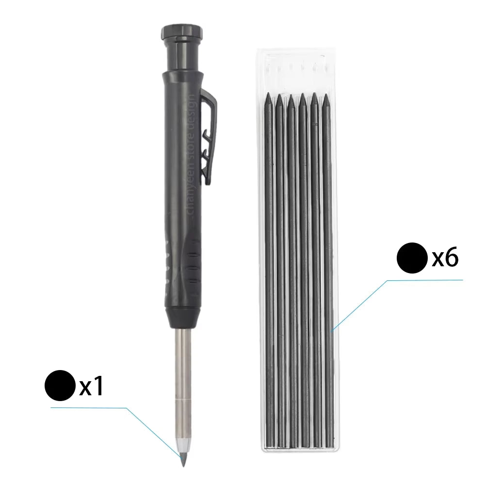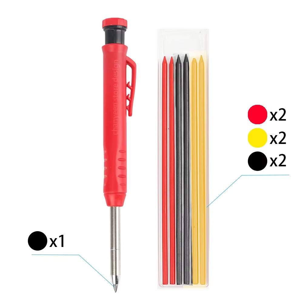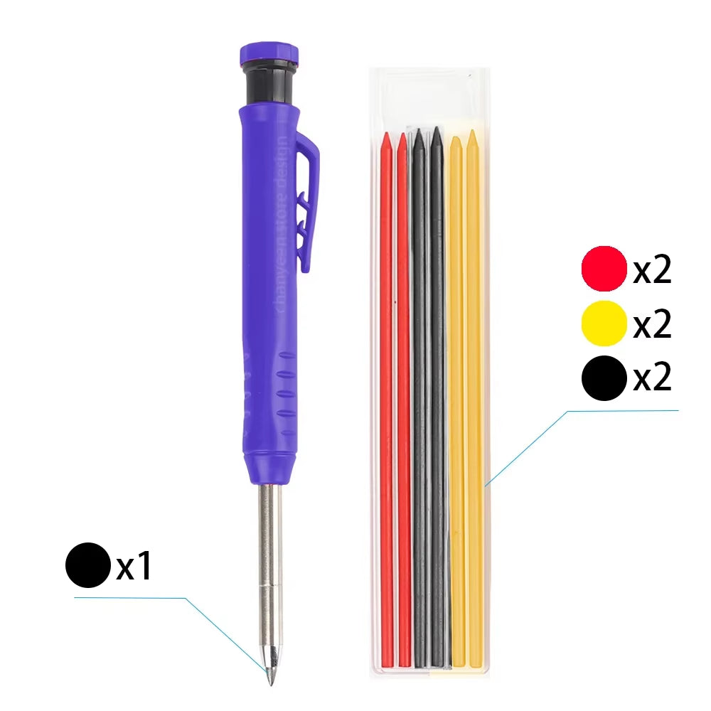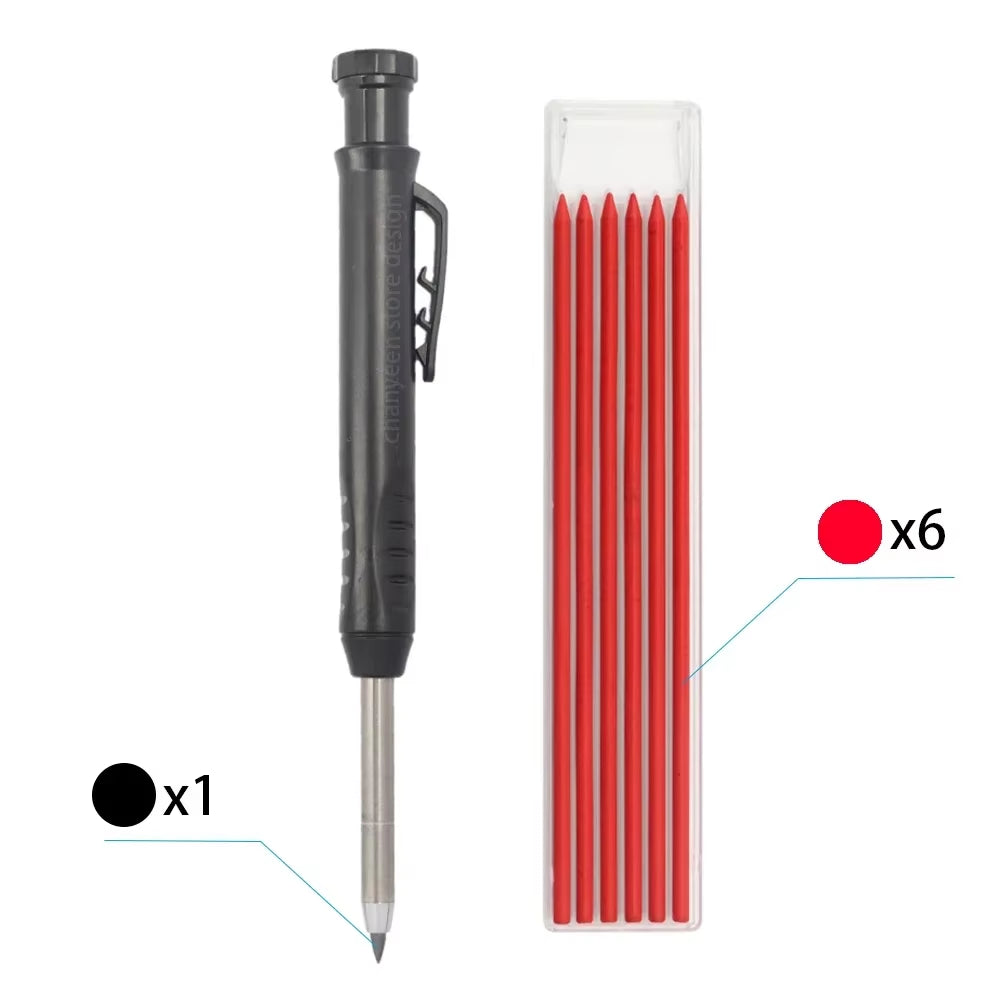 1.【Deep hole manufacturer】 : The design time of the deep hole carpenter's pencil is 45mm extension and needle nose tip, reaching hard-to-reach areas, while other carpenter signs cannot. It is suitable for through-holes or other tight area signs.
