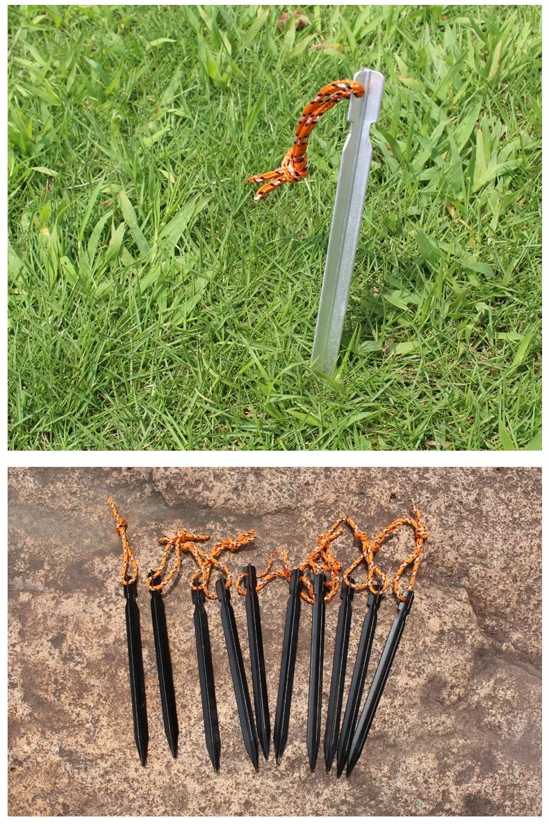 8Pcs/Lot 18CM Aluminum Alloy Tent Pegs Nail with Rope Camping Hiking Equipment Outdoor Traveling Tent Accessories