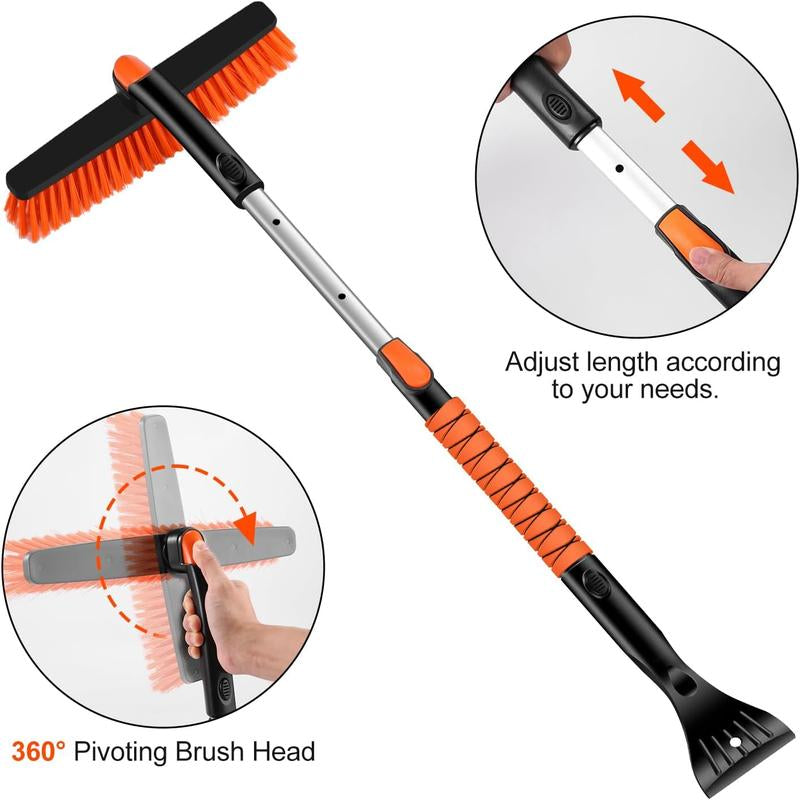 Odoland Ice Scraper with Snow Brush and Snow Shovel, 35" Extendable Snow Remover with Foam Grip, 360° Pivoting Brush Head for Car Windshield, Emergency Snow Scraper for SUV Truck Vehicle, Orange