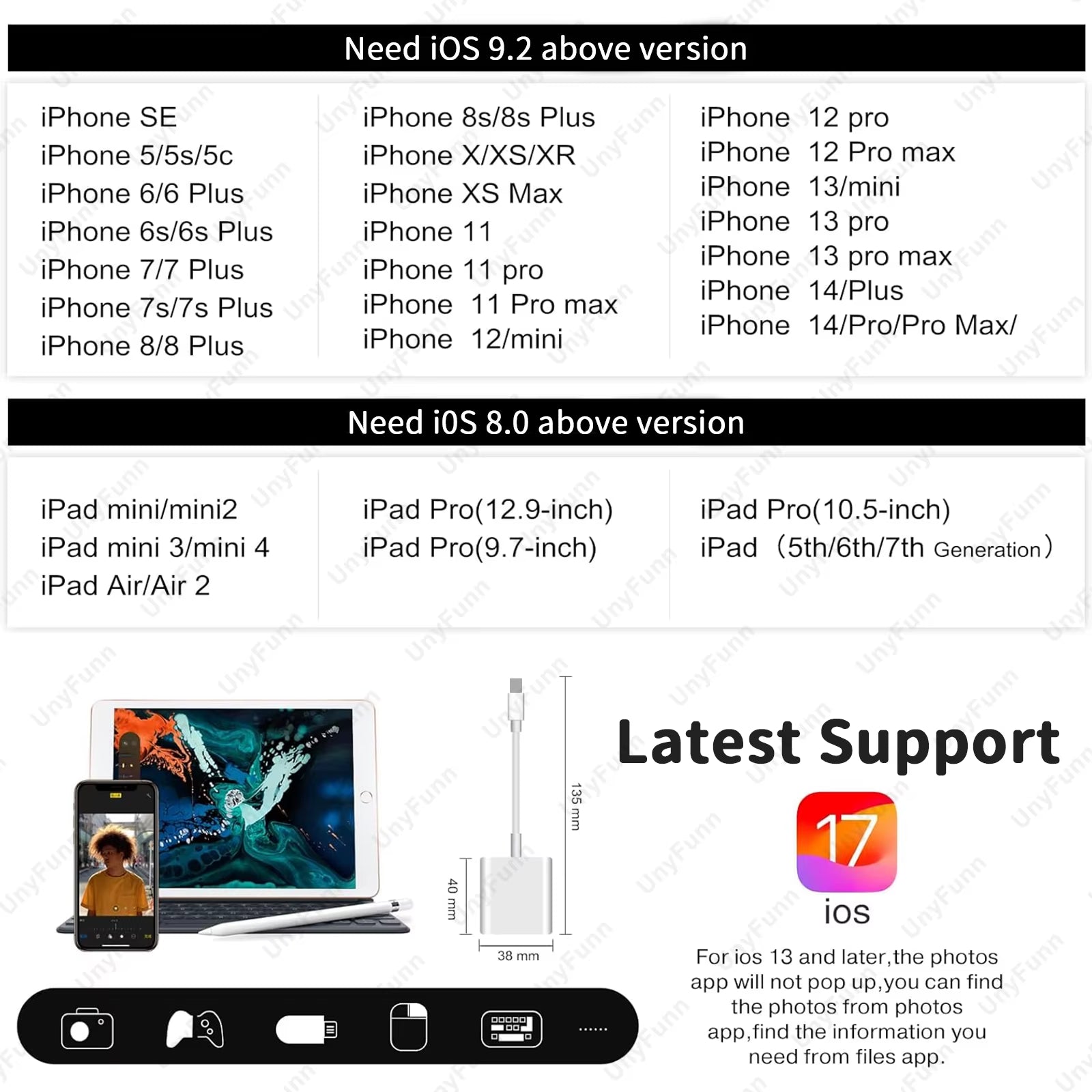 OTG Adapter with Charging Port for Iphone Trail Camera Adapter for Lighting USB Adapter for Iphone Card Reader USB Flash Stick Share WhatsApp Deel X Pin it Messenger Email Product form Items in this listing are for iPhone lighting only, not for typec. Read more €12,60 Incl. VAT Customer Reviews Be the first to write a review Write a review 0% (0) 0% (0) 0% (0) 0% (0) 0% (0) Quantity Add to cart