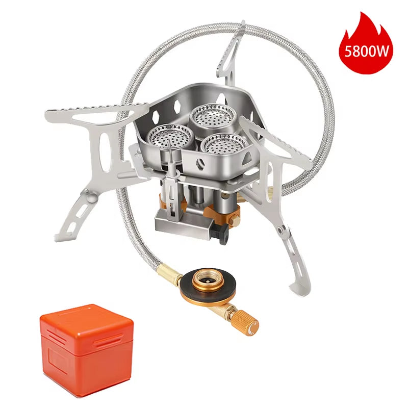 Description: 1. High energy efficiency: the honeycomb mesh cover stabilizes the flame and increases the combustion load. The 5800w watt camping gas stove can quickly boil 1 liter of water in just 3 minutes.