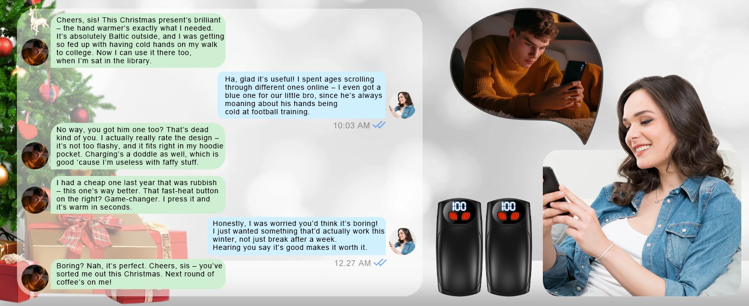 These two hand warmers are equipped with strong magnets that easily snap together to form a single unit, providing 360° heat coverage.