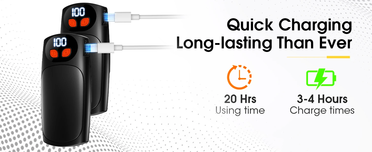 A clear digital screen displays the battery level, allowing you to adjust the heat to your preference and track the charge at a glance.