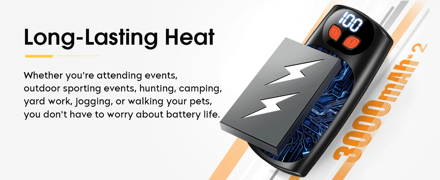 Up to 8-20 Hours of Heating,This reusable hand warmer has a total battery capacity of 6000mAh and five ultra-fast heating levels. It fully charges in just 4 hours and provides 8 to 20 hours of heat, depending on the setting.