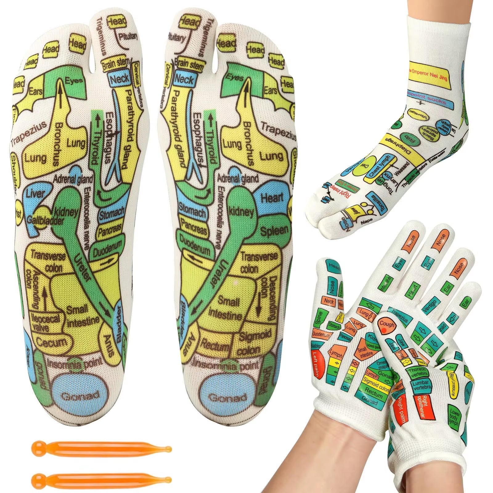 Reflexology Socks Gloves Hand Foot Massage Soothing Relaxing Therapy Pain Relief Improve Circulation Health Personal Foot Care