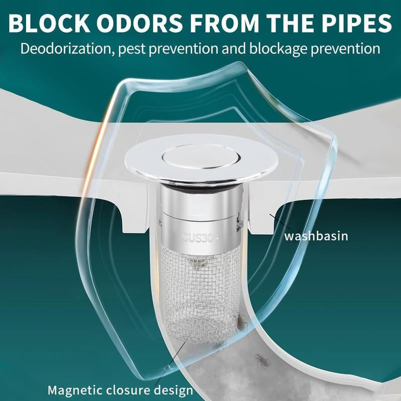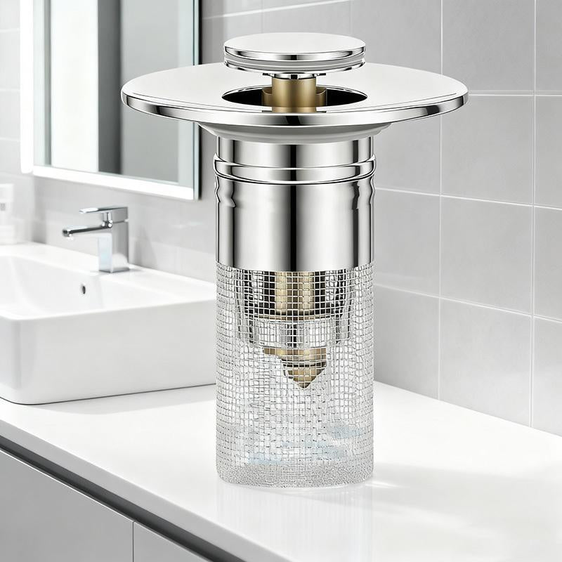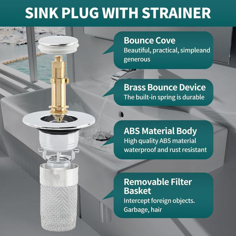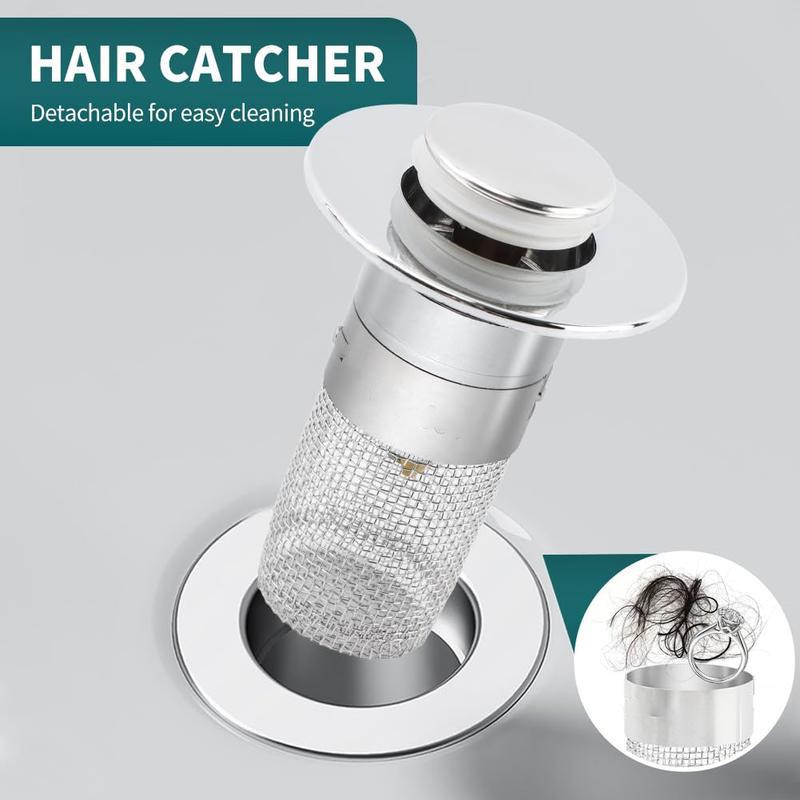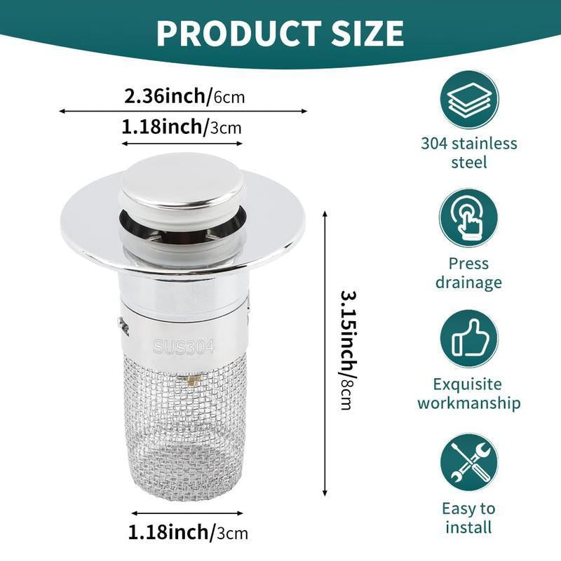 Sink Drain Strainer Pop-Up Stopper with Removable Stainless Steel Basket Hair Catcher Bathroom for Replacement